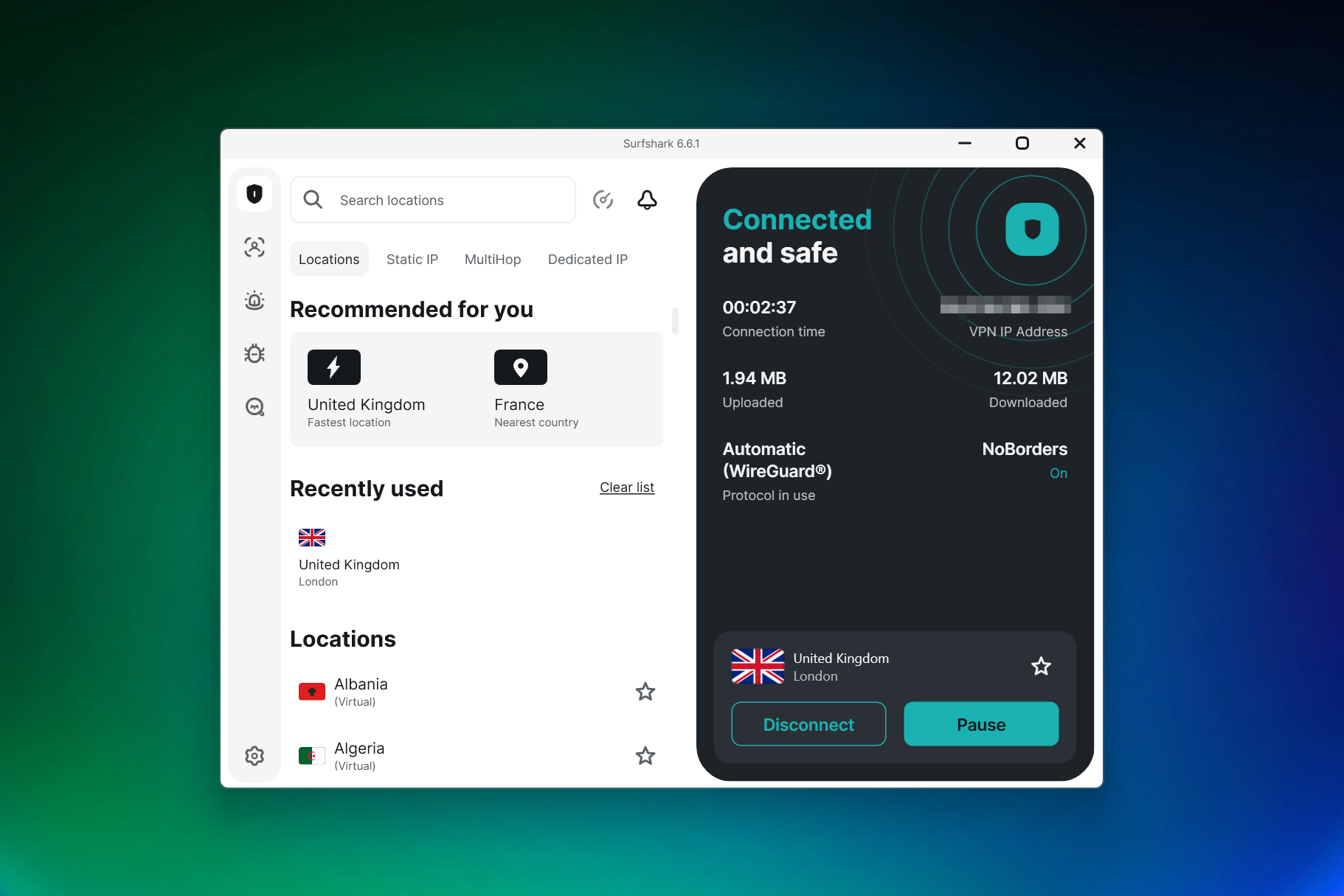 As for your connection, you get AES-256 encryption, an automatic kill switch (which cuts your internet if the VPN drops, preventing data leaks) and the fast, modern WireGuard protocol enabled by default. You can also use Dynamic MultiHop, which lets you bounce your connection through two different countries for double the encryption.