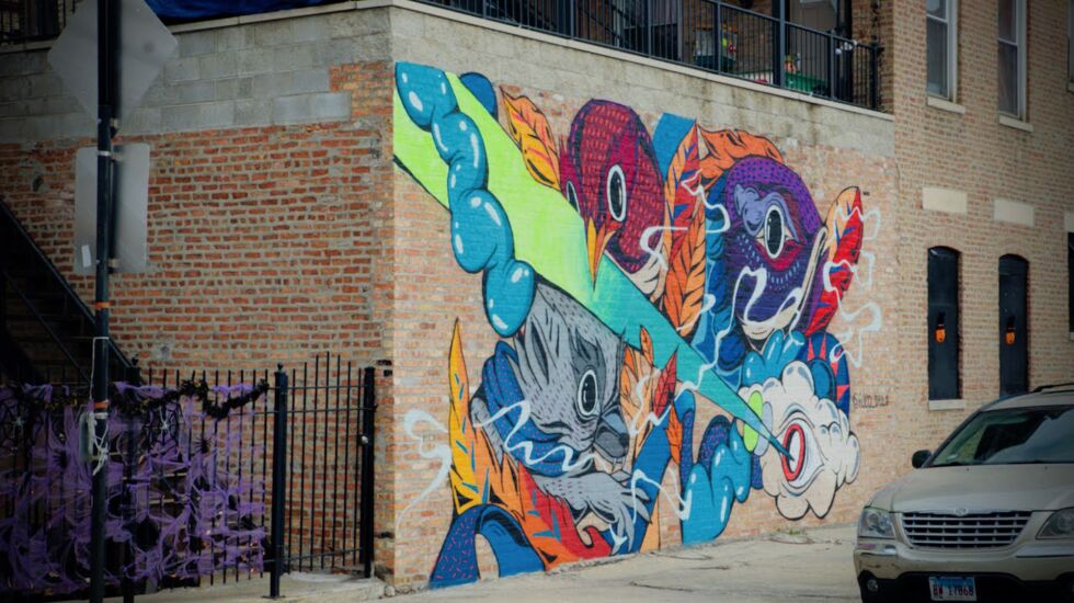 Artist says this mashup in a Pilsen mural of birds and feathers and a beam of light is about ‘paying attention to nature’