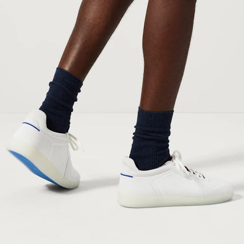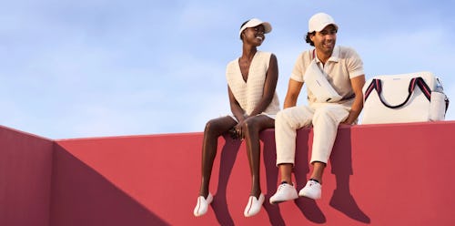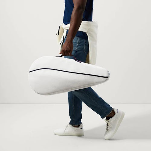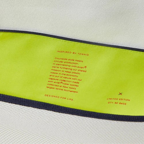 The collection is meant to take on the tennis court with a racket bag, duffel bag, sling bag, hat, visor, and two sneakers. Each arrives in a white U.S. Open-approved washable fabric with red and blue accenting. Men's and women’s sneakers come in the style of an RS-01 and slip-on sneaker, respectively, as limited-edition releases. The sneaker’s outsole is even semi-translucent as a nod to the Evian bottle caps.