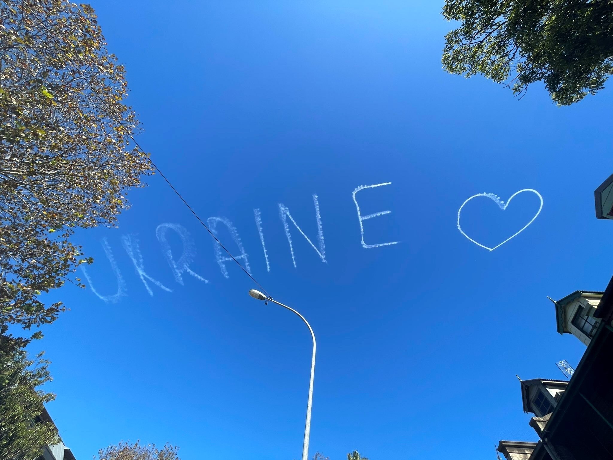 They sang traditional peace songs and chanted, "Thank you Australia" as the word Ukraine was written in the sky.
