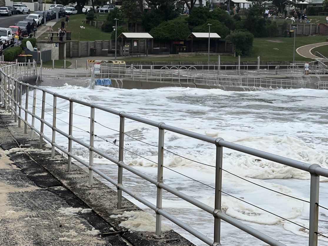 Parts of North Bondi remain closed today after water reached the promenade and the fence above the Wally Weekes pool.