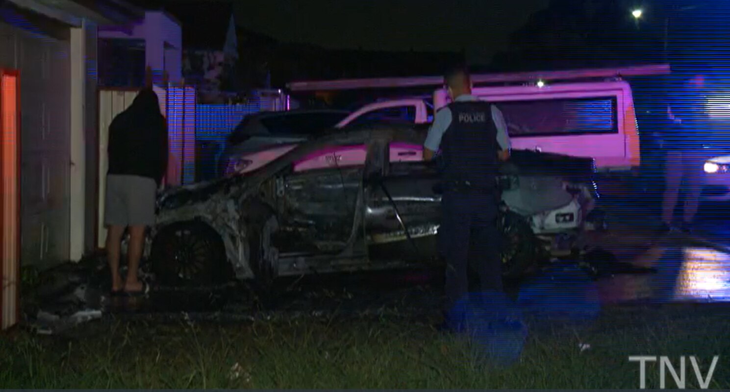 A Mercedes was found burnt out in a driveway on Markey Street, Guildford about 12:20am.