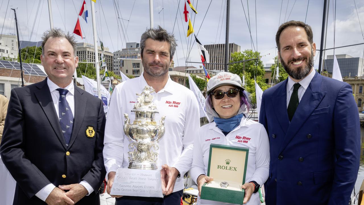 A female skipper has won overall Sydney to Hobart honours for the first time after a post-race time penalty for breaking sailing rules flipped the top two standings.