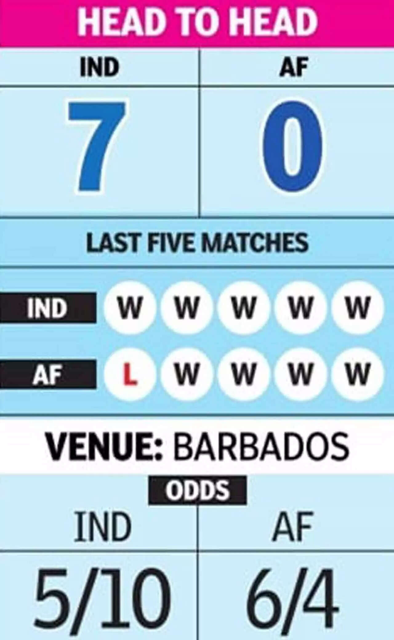 Add to that the decent run that Afghanistan enjoyed in the group stages, till they were handed a reality check by an impressive West Indies in St. Lucia. But India will keep in mind that Afghanistan have beaten a team of great pedigree in New Zealand. Interestingly, the conditions here at Kensington Oval might just be to the liking of both teams.