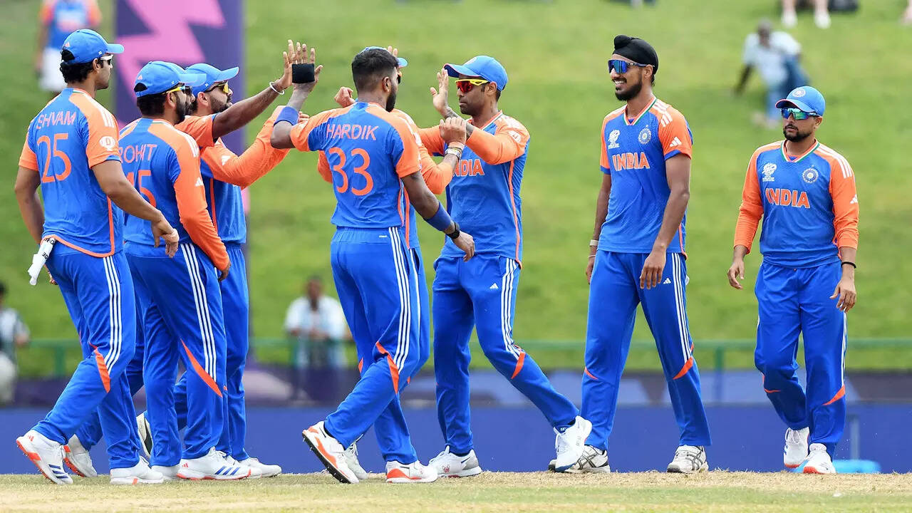 NEW DELHI: Hardik Pandya's stellar all-round performance and Kuldeep Yadav's clever bowling helped India secure a convincing 50-run victory against Bangladesh in their second Super 8 match of the T20 World Cup on Saturday, positioning them favorably for a semifinals berth. India scored 196 for five, thanks to contributions from Virat Kohli, Shivam Dube, and Hardik Pandya. In response, Bangladesh struggled to 146/8 in their 20 overs.