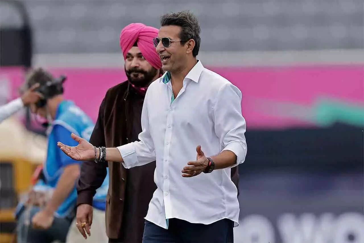 Navjot Singh Sidhu and Wasim Akram in the ground ahead of the T20 World Cup match between India and Pakistan. (AP Photo)