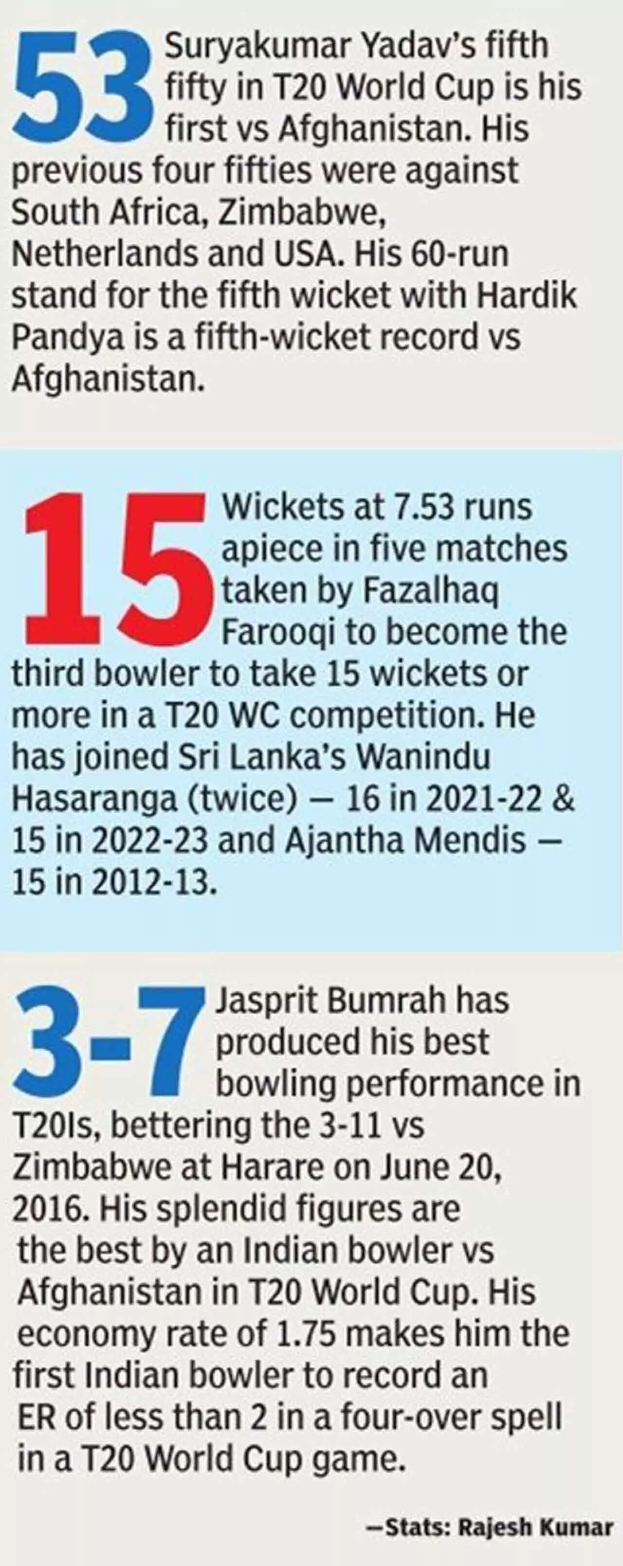 Before Bumrah got into his act with the ball, it was his Mumbai Indians colleague who showed why he has been the best T20 batter in the world for the last two years. With the wily Rashid Khan (3-26) in his elements and India's famed top-three of Rohit Sharma, Virat Kohli and Rishabh Pant not making a significant contribution, it had to be Surya who had to come to the rescue.