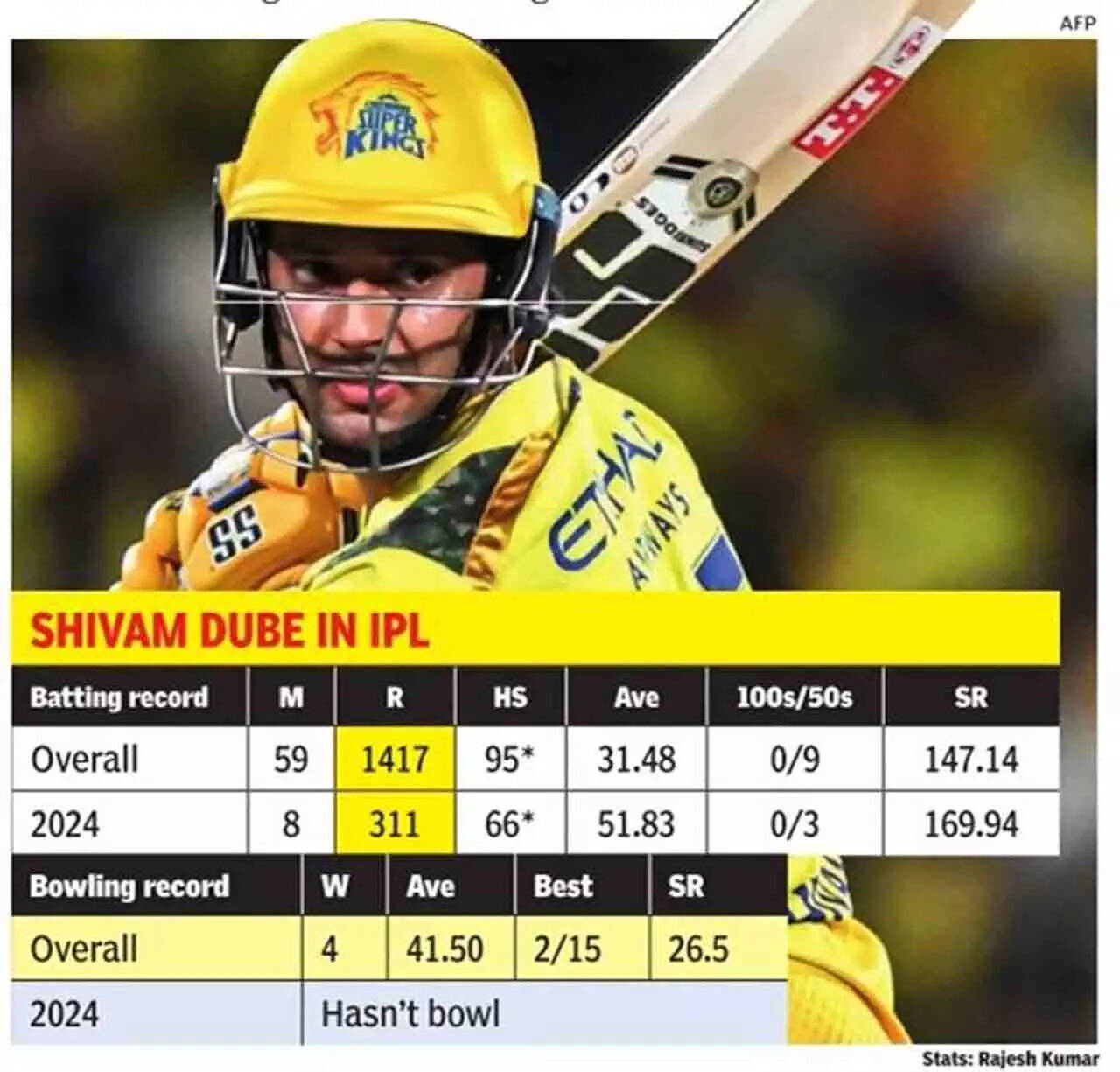 The fact that Dube hasn't bowled at all in the IPL so far - courtesy the 'impact player' rule - has left the selectors in the dark about the allrounder's current bowling form.