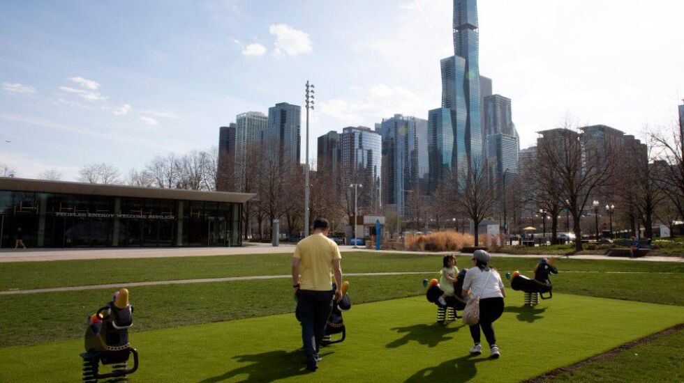 On the way to the lakefront, look for one of the several bus shelters along Grand Avenue that display the photographs of Ethiopian photographer Aida Muluneh. Set against graphic backdrops, Muluneh’s photographs often feature women whose faces are painted faces or who are wearing bold colors and staring at the camera, images that are full of symbolism. The bus-shelter takeover — happening through May not just in Chicago but also in New York, Boston and Abidjan, Côte D’Ivoire — is part of a large Public Art Fund installation. Click here for a map of Chicago locations.