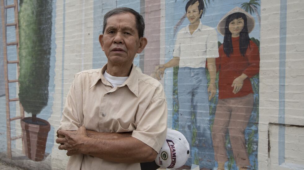 The elder Nguyen can often be seen walking in the area wearing a bright blue and yellow vest that states, “How can I help?” He’s also depicted in a mural that chronicles the neighborhood’s history.