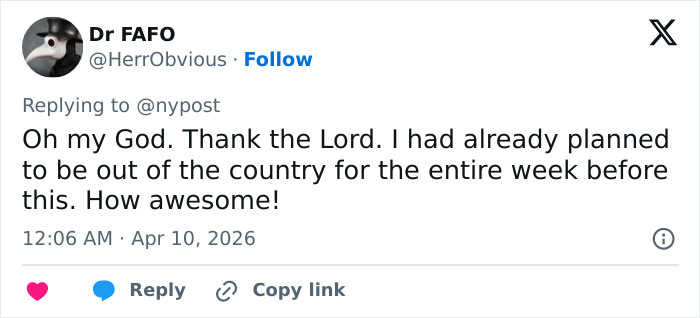 Another commented, “Those of us who live near the area are already planning our escape. They have announced that trains will be for World Cup ticket holders only on game days so you can imagine the insane traffic in and around NYC. She can’t be this clueless about what’s happening that weekend.”