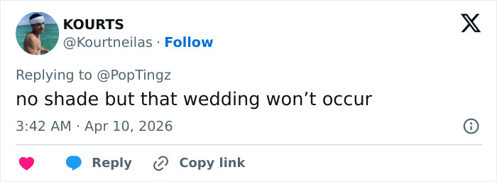 The same user doubled down, writing, “I still don’t see this wedding happening.”