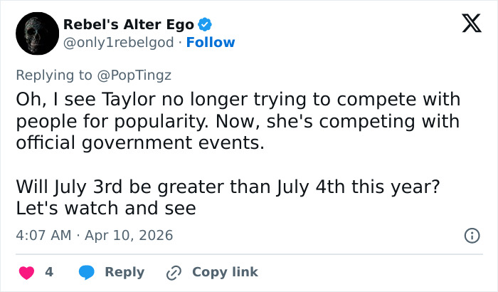 Meanwhile, the Grammy winner is also facing legal challenges of her own, as she has recently been named in a federal lawsuit in California related to her 2025 album, The Life of a Showgirl.