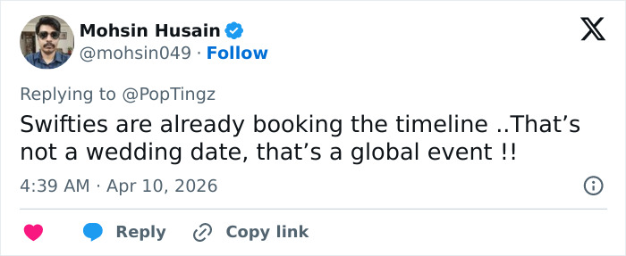During the alleged wedding date of Taylor and Travis, the 2026 FIFA World Cup will be in full swing, with New York/New Jersey serving as a host region and a match scheduled at MetLife Stadium on July 6.