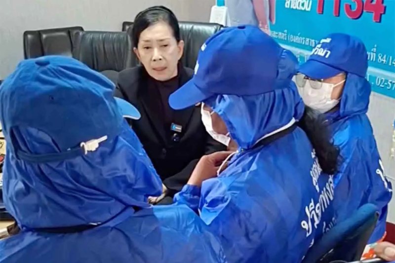 Pavena Hongsakul listens to complainants on Monday. (Screenshot from the Facebook page of her foundation)