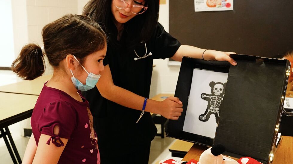 “It’s a low-risk environment for our students to engage with preschool kids and engage with their peers,” said Jeanne Lapp, who teaches the students at Little Village Lawndale High School.