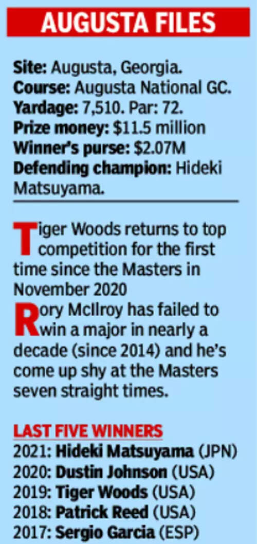 There really is no dearth of story lines: there is Scottie Scheffler, who took just 42 days from racking up his first PGA Tour win to becoming world No.1; there is Rory McIlroy, who since 2014 is trying to add the Green Jacket to complete the collection to join the elite list with a Career Slam; then there is Hideki Matsuyama, who worked so hard to serve the flavours of Japan at the Champions Dinner on Tuesday, while trying to get 100 per cent fit for his title defence. They are all raring to go.
