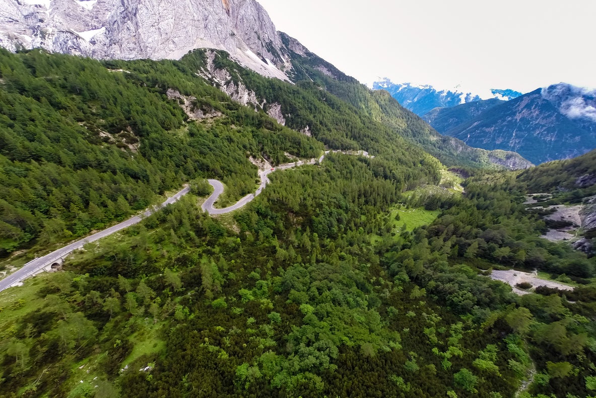 Something to consider: The cobbled hairpins on the Kranjska Gora side are slippery when wet.