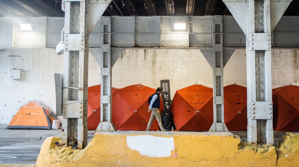 He has set his sights on developing tiny homes, a housing solution more permanent that tents. Robledo said he was speaking with people about developing a prototype tiny home that would cost $1,000. Lightfoot’s new budget sets aside $3 million for a pilot to build tiny homes.