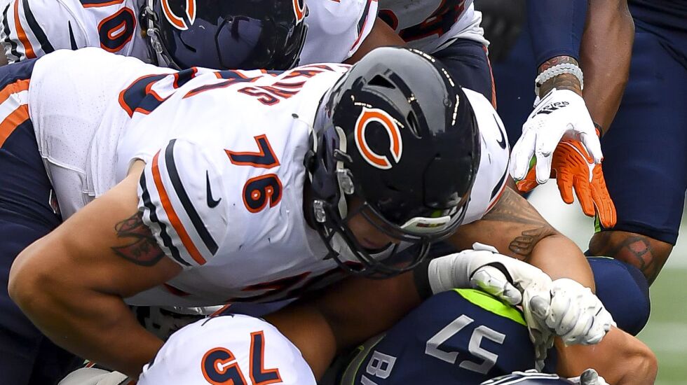 “You think about that for a second — coming there for a couple of days and then starting in there and on playing,” Eberflus said. “We were impressed. He did a nice job. … Now he’s got to continue to grow at the position. Like everybody else on the team, he’s got a lot to work on. But he had a good first outing in there.”