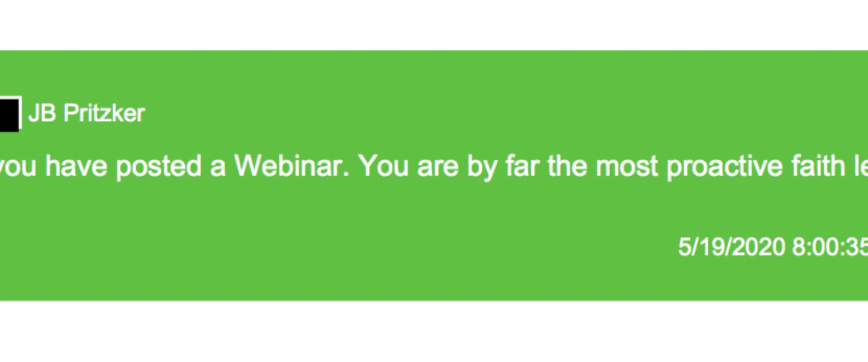 Pritzker responded: “I love that you have posted a Webinar. You are by far the most proactive faith leader in the nation.”