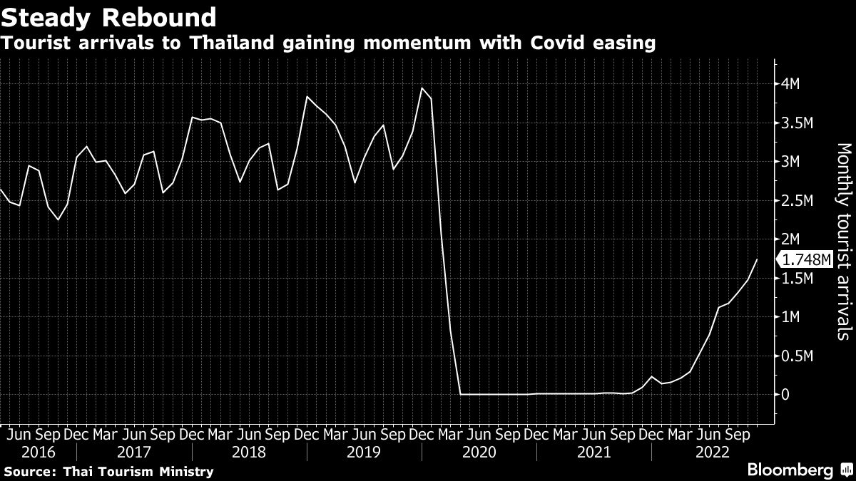 The minister said tourist arrivals to Thailand will continue to rise and power an economic recovery that’s been underway. The country expects 7 to 10 million Chinese travelers to arrive by air this year, Anutin said.