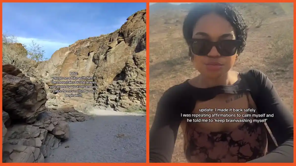 A video posted to TikTok by “everafteriya” shows the woman in clear distress as she walks along a rocky hiking trail by herself. The caption in the video reads: “POV: you go on a hike with him in the mountains but he leaves you alone by yourself and you realize he never liked you to begin with.”