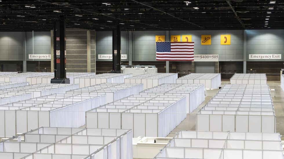 The state has kept 750 “quick beds” and 375 hospital beds from the McCormick Place field hospital, according to Kevin Sur, a spokesman for the Illinois Emergency Management Agency and Office of Homeland Security. A quick bed is a heavy, sturdy, tubular metal frame bed. The hospital beds are powered to help position a patient for better care and recovery, he said.