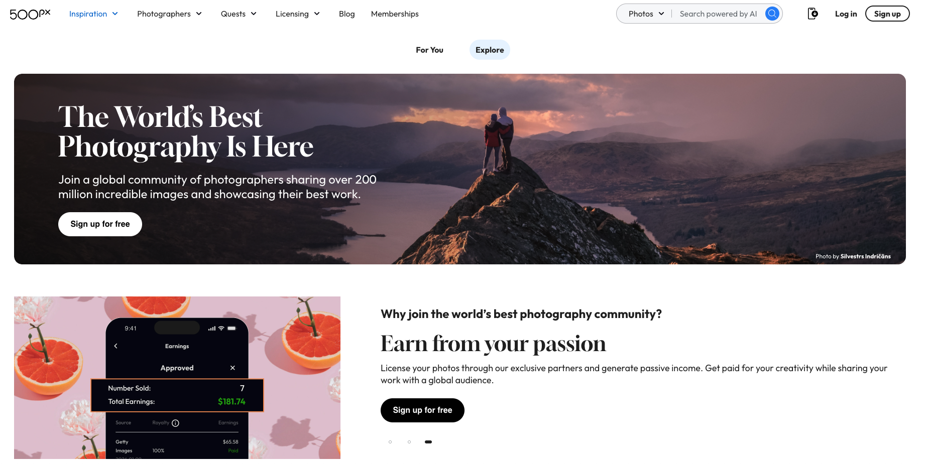 The 500px online photography community has a library of well over six million photos that can be a great resource for inspiration. There's also a dedicated blog and news articles on the site to browse through.
