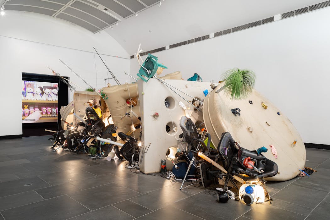 Erika Scott takes aim at the throw-away nature of high-tech and low-tech household and garden materials in contemporary times in her over-the-top environmental horror installation Necrorealist Sunscreen (2026). It touches a nerve in all of us.