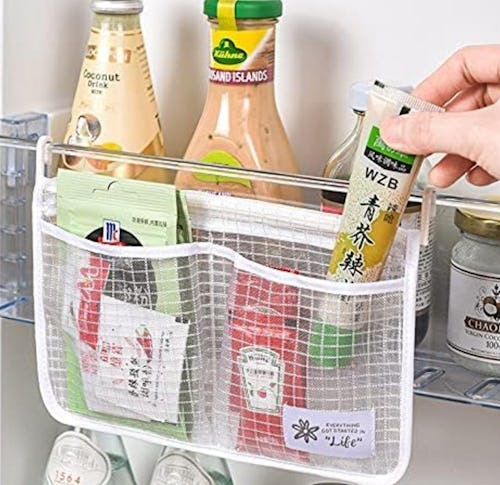 Store sauce packets, cloves of garlic, and more in these refrigerator door organizer bags. Made of BPA-free mesh, they allow airflow to prevent unwanted odors from building up. Hang them on your fridge doors to instantly create more storage space. Since they’re see-through, you can find what you need without rummaging around.