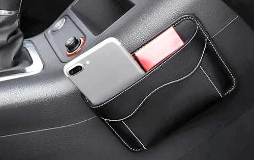 This car seat pocket organizer is perfectly sized for cell phones, wallets, glasses, and more. Just attach its Velcro backing to your seat, door, or center console, then press it into place. Its high-quality faux leather is waterproof, so if roads get bumpy and drinks spill, it'll still stay in great condition.