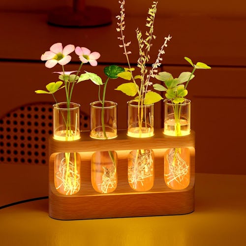 This plant propagation station looks like magic, but it’s pure science. It comes with four lightweight tubes made of borosilicate glass. Bright LED lights illuminate your plants from roots to leaves, showing you how much they’ve grown. Each tube stands at 4.5 inches tall, and the base is 7 inches long; as such, it's perfectly sized for your desk.