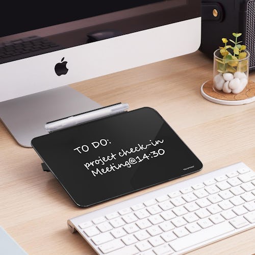 This compact dry-erase board would be a welcome addition to any workspace. Markers glide over its sleek glass surface and rest in the built-in tray when you're finished. It also has a stand that keeps it upright, so you can see your to-do list at a glance. At 8-by-6 inches, it fits into smaller offices and WFH setups.