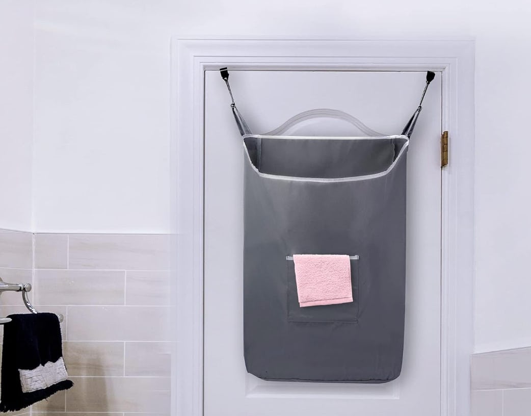 If you’re tight on closet or laundry room space, this clever hanging laundry bag is a bit of a game-changer. Installation takes seconds — it comes with sleek chrome hooks to sling over your door that promise to be gentle on paint and finishes. The laundry bag has a handy bottom zipper too, for breezy unloading.