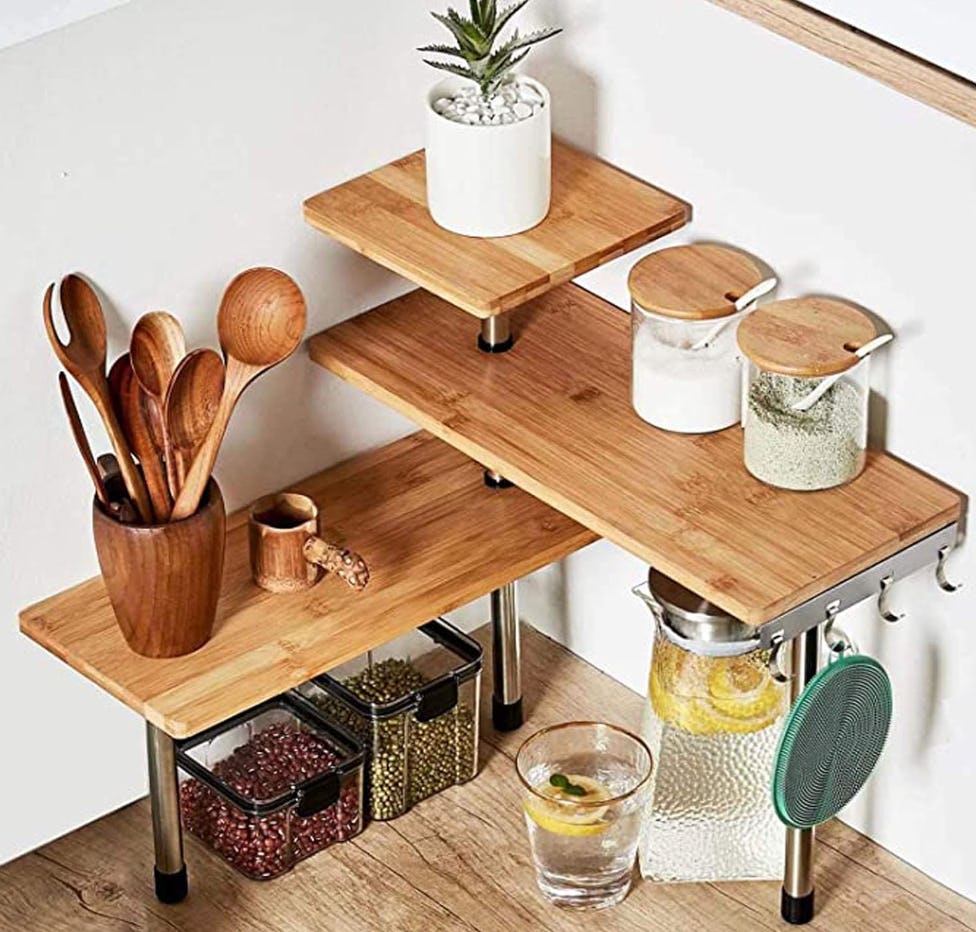 Make the most of the space in your cabinets (or on your counters) with this expandable shelf. It can extend from 16 to 26 inches long and is sturdy enough to hold 22 pounds of spices, cans, plates, and more. Buy a few and stack them to store even more.