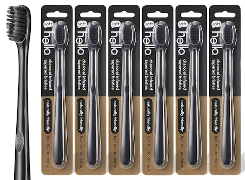 These charcoal-infused toothbrushes come in a budget-friendly pack of six. Each one has a plant-based handle and brush head that boasts soft nylon bristles that include activated charcoal derived from bamboo. You can even take your charcoal-based routine to the next level with the brand’s charcoal toothpaste. The entire toothbrush is BPA-free, but keep in mind it is not fully biodegradable.