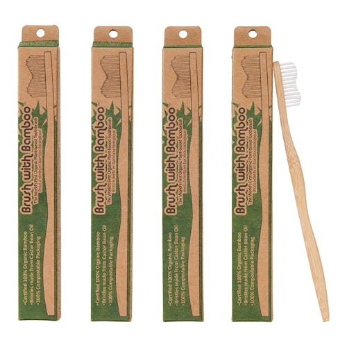 This eco-friendly toothbrush is an obvious fan favorite on Amazon, with 13,000 reviews and a 4.6-star overall rating. The handle is made of sustainable and durable bamboo that’s water-resistant and won't splinter, and it features a comfortable, contoured grip. The soft toothbrush bristles are constructed of BPA-free nylon and infused with charcoal to help brighten and whiten teeth. Though you’ll have to pull out the bristles before you compost the handle, the brand does make sure that all of its packaging is made of recycled, biodegradable craft paper, so as to not be adding any unnecessary waste. This option is also a steal — you’ll get four toothbrushes for less than $10.
