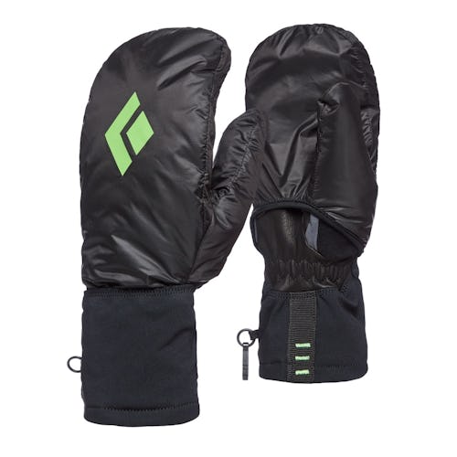 Are they gloves or are they mittens? The Black Diamond Cirques are both, transforming from a lightweight leather glove to a synthetic-insulated mitten by just pulling the hidden “hood” over the fingers. They’re most ideal for activities like ski touring where you need a breathable, light glove for the uphill, but a warmer, wind-blocking shell for the way back down.