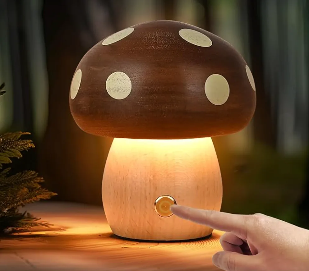 This beechwood mushroom lamp brings a warm, calming glow to any space in seconds. It has touch controls, so you can easily adjust the brightness to suit any lighting need or vibe, plus it’s rechargeable, cordless, and compact — perfect for nightstands, desks, or small spaces. The soft lighting is easy on the eyes, and it’s wooden style makes it blend in seamlessly with any decor setup.