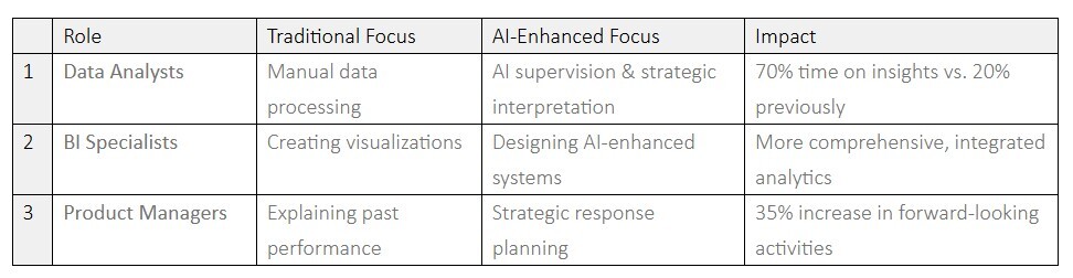 Challenge: Organizational culture must adapt to a new relationship with data where AI handles routine analysis while humans focus on interpretation.