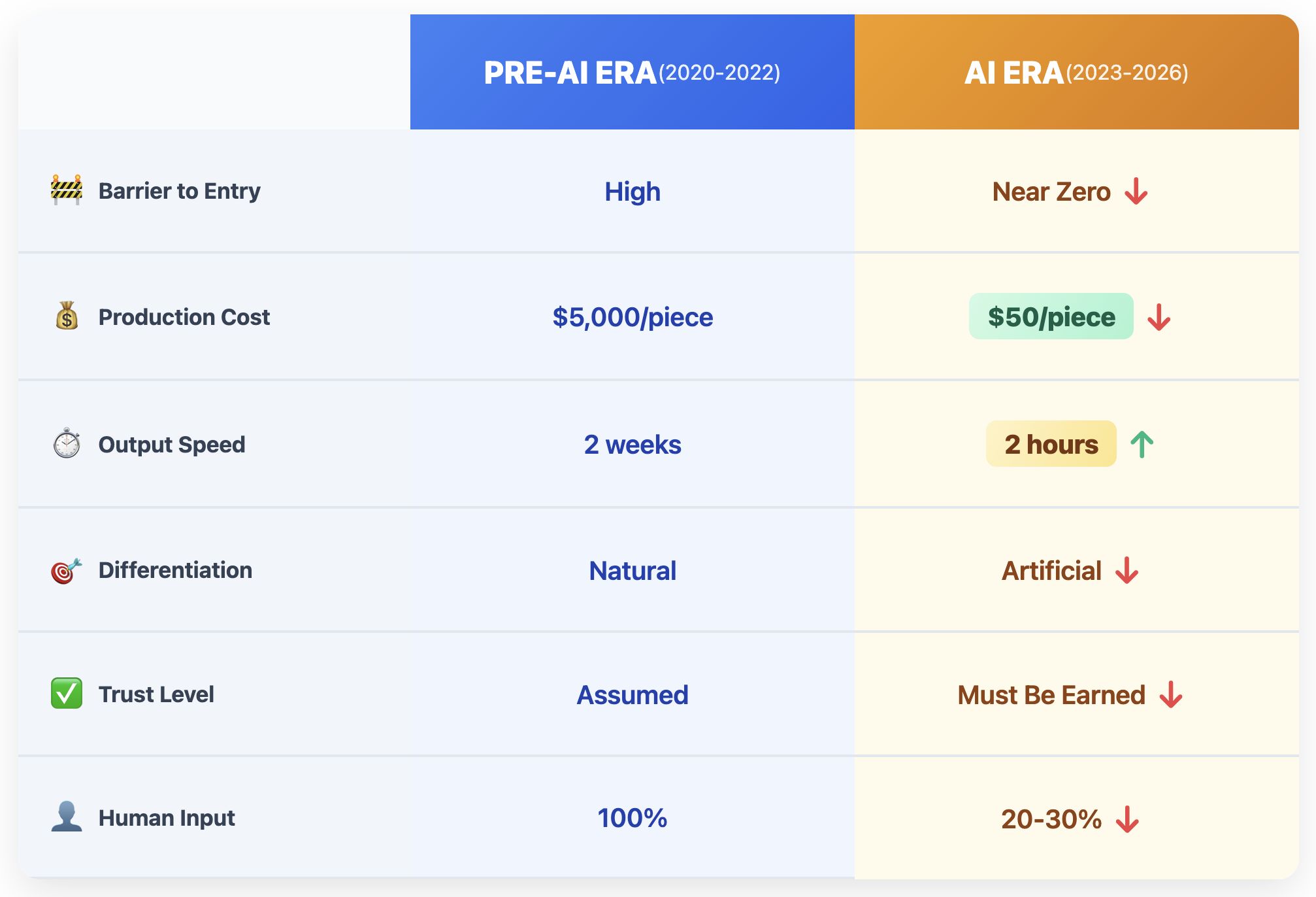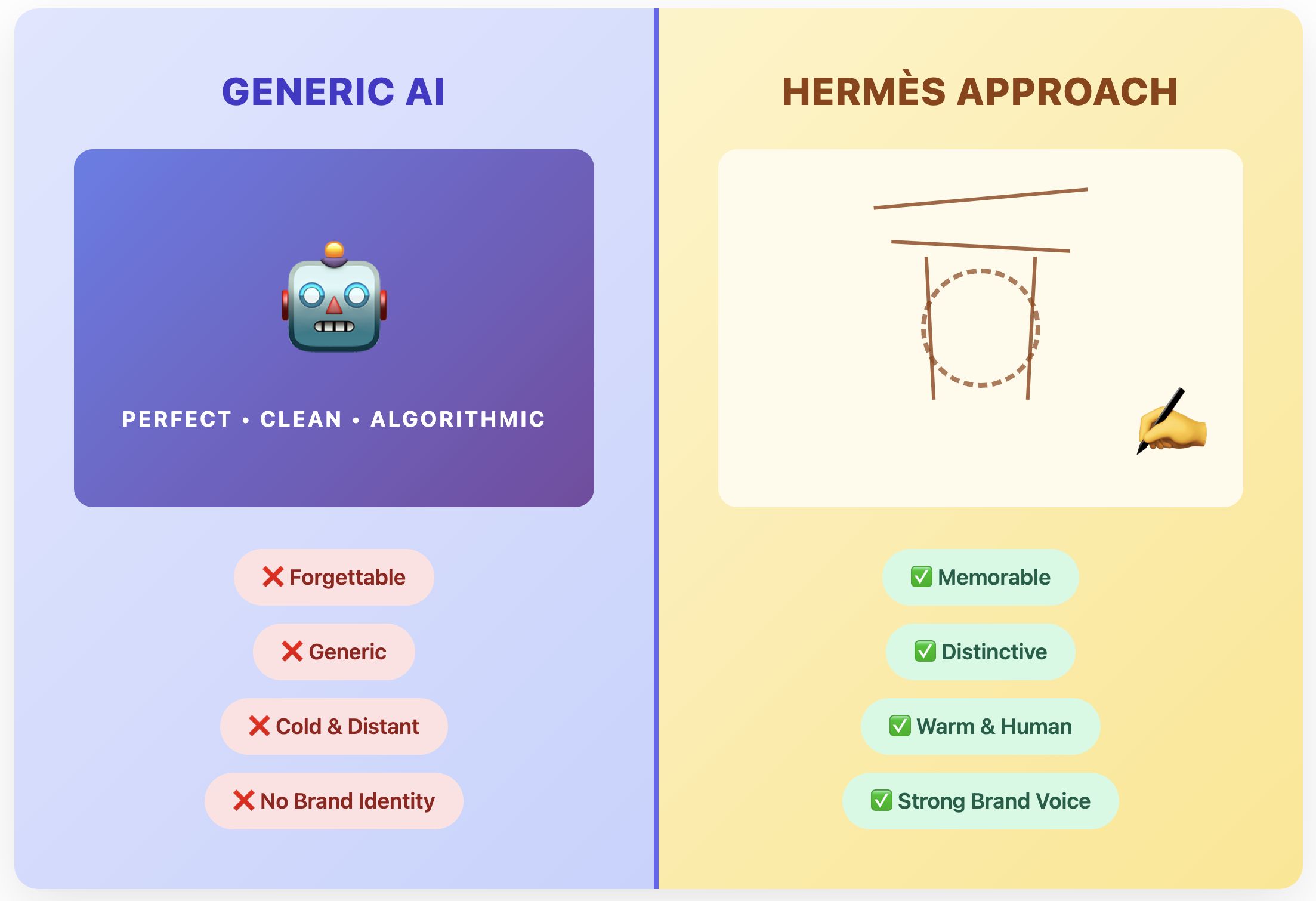 Today, content is cheaper and faster to produce. With new content creation tools, many brands risk losing the qualities that once made them stand out. The barrier to entry dropped to near zero. So did the barrier to forgetting.