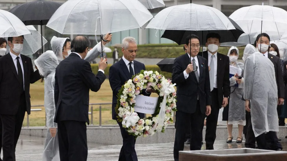 The former mayor then headed to the Hiroshima Peace Memorial Park, which “is dedicated to the legacy of the first city in the world to suffer a nuclear attack” and its victims, to lay a wreath with Japanese Prime Minister Fumio Kishida.