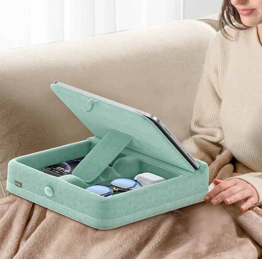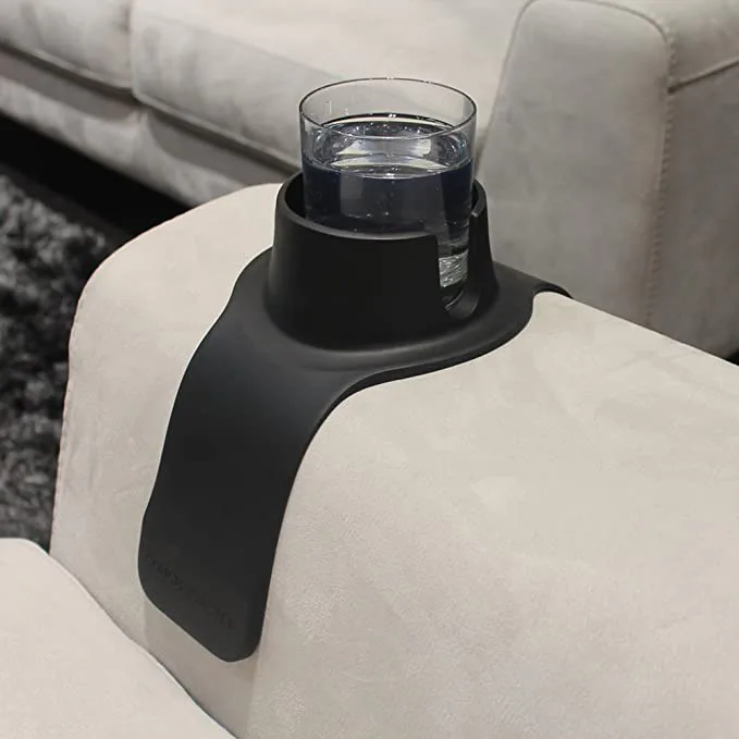 This couch coaster holds your drinks in place, preventing spills and keeping furniture clean. It's made of flexible silicone that wraps around your couch arms and has a nonslip backing. You can use it with hot and cold drinks, whether they're in mugs, cans, or glasses. It also has a removable adapter for narrower cups.