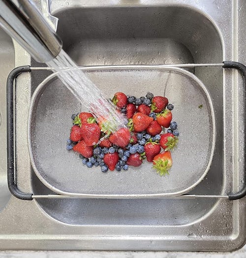 Simple yet effective designs can go a long way toward overall convenience, and this over-sink strainer proves it. It features a stainless steel mesh straining basket with an adjustable frame that can expand from 14 to 21 inches in order to sit over a variety of sink widths. The rubber grips on the frame keep it firmly in place, too.