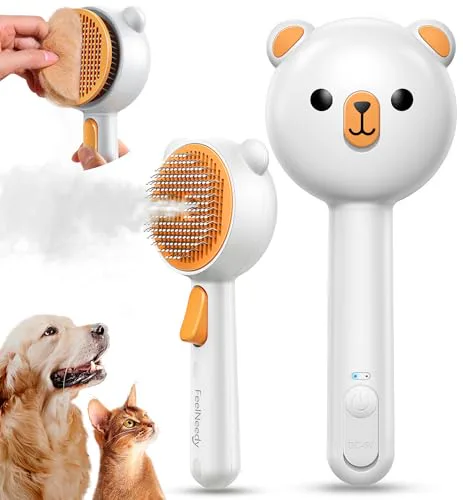 Pet Steam Brush for Dogs & Cats, Brushes for Indoor Cats with Release Button, Dual Speed Spray USB Rechargeable Grooming Supplies, Dog Brush for Shedding Suitable for All Long- and Short-haired Pets