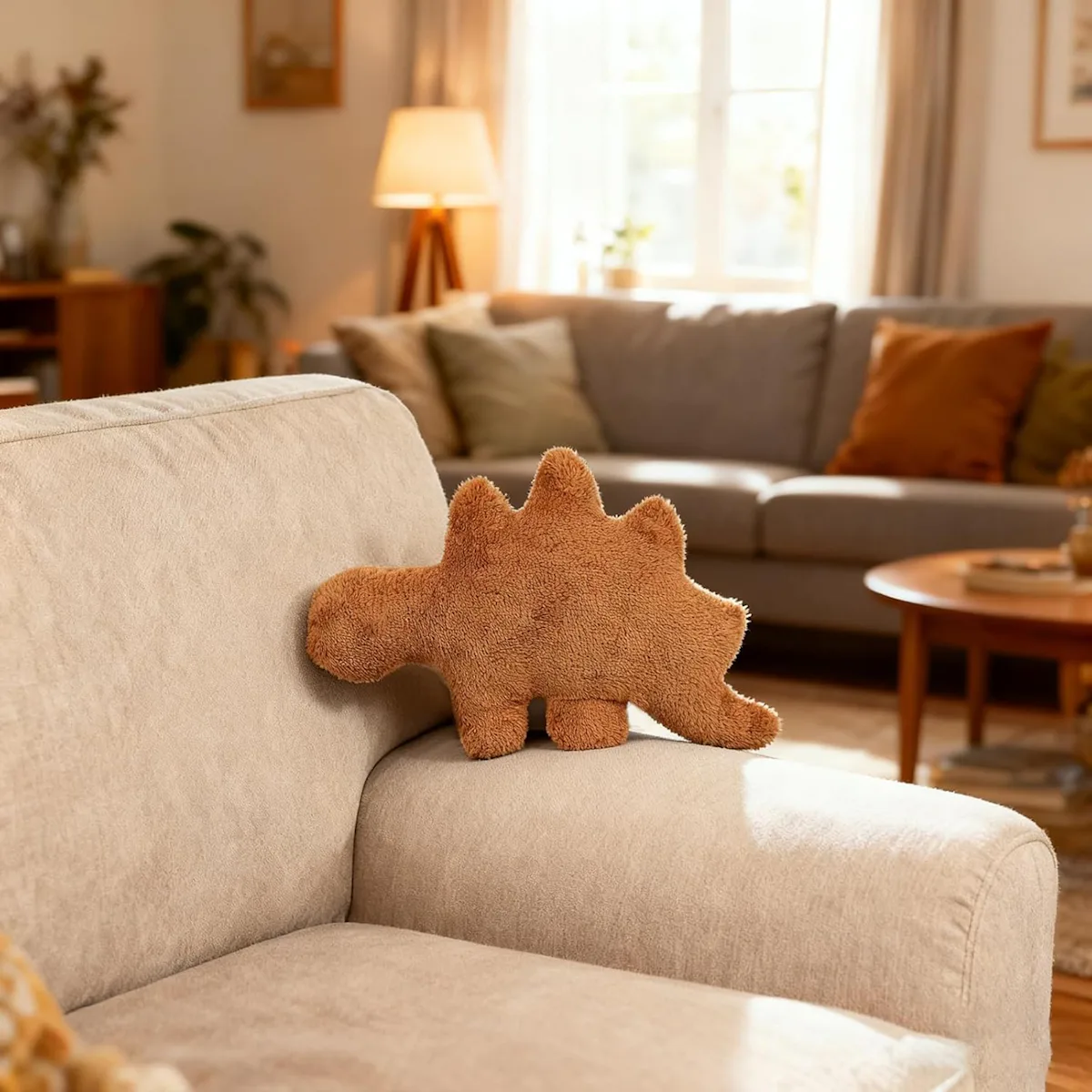 A soft plush dino nugget pillow that’s 18 inches long
