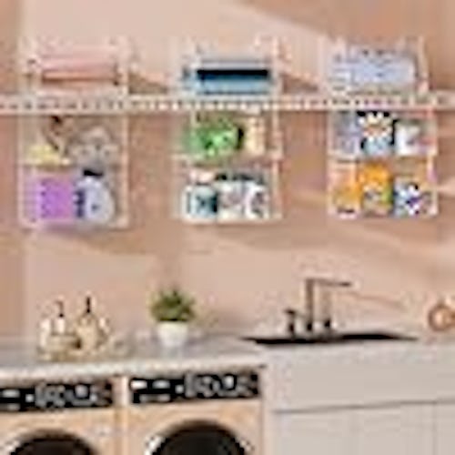 Tired of digging through cabinets? This hanging basket system features chic white metal baskets that make it easy to identify contents. Including a metal shelf, three baskets, and rotatable hooks, it’s perfect for organizing pantry or laundry room items — your home will look like a movie set.