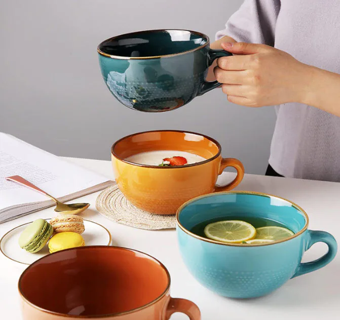 A colorful ceramic mug with extra-large capacity