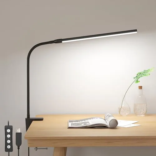 Lepro Clip on Desk Lamp LED Reading light Dimmable USB Small Clamp Lamp with 3 Color Modes 10 Brightness, Adjustable Flexible Gooseneck Table Light for Bed Headboard, Nail, Home Office,Computer(Black)